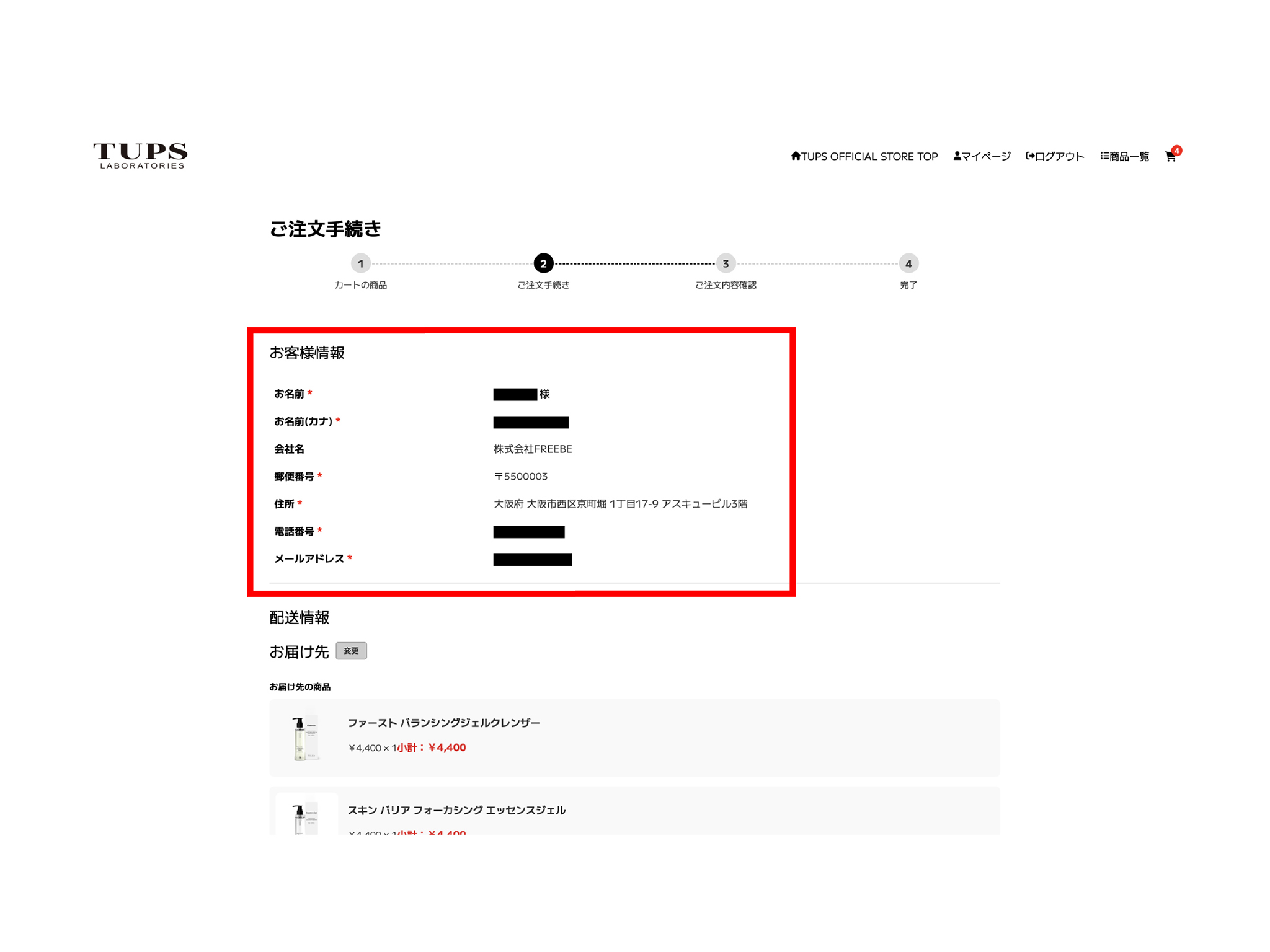 ご注文手続き画面でお届け先やお支払方法などを指定・確認をしてください。
