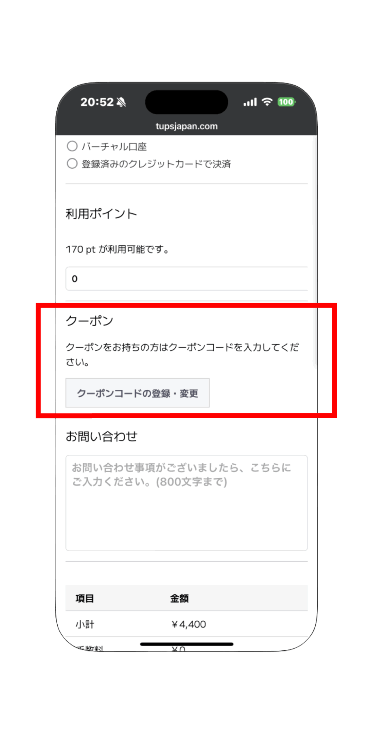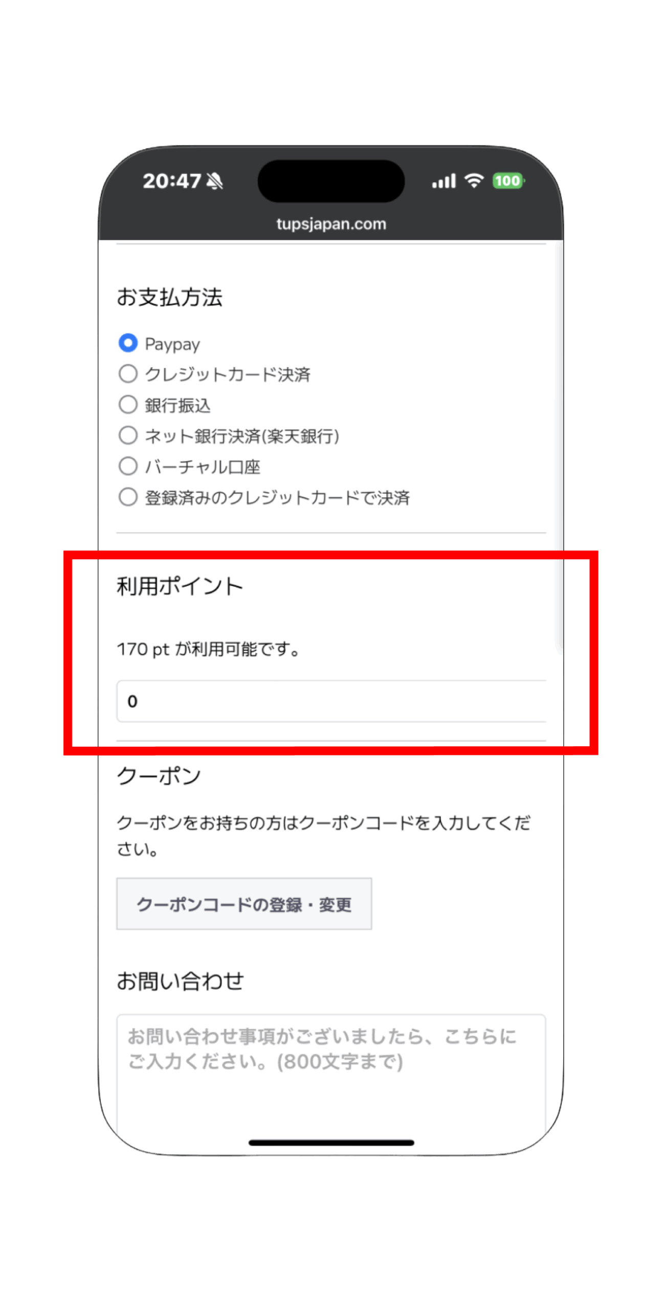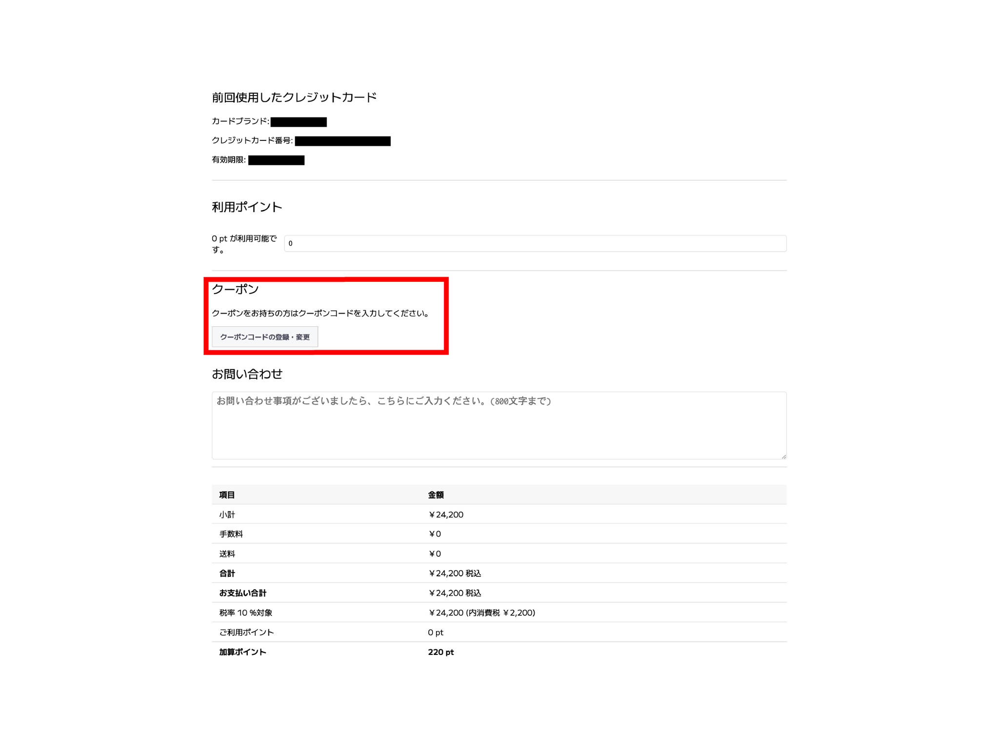 ポイントとクーポンのご利用についての詳細は、下記の「ポイント・クーポンについて」をご確認ください。