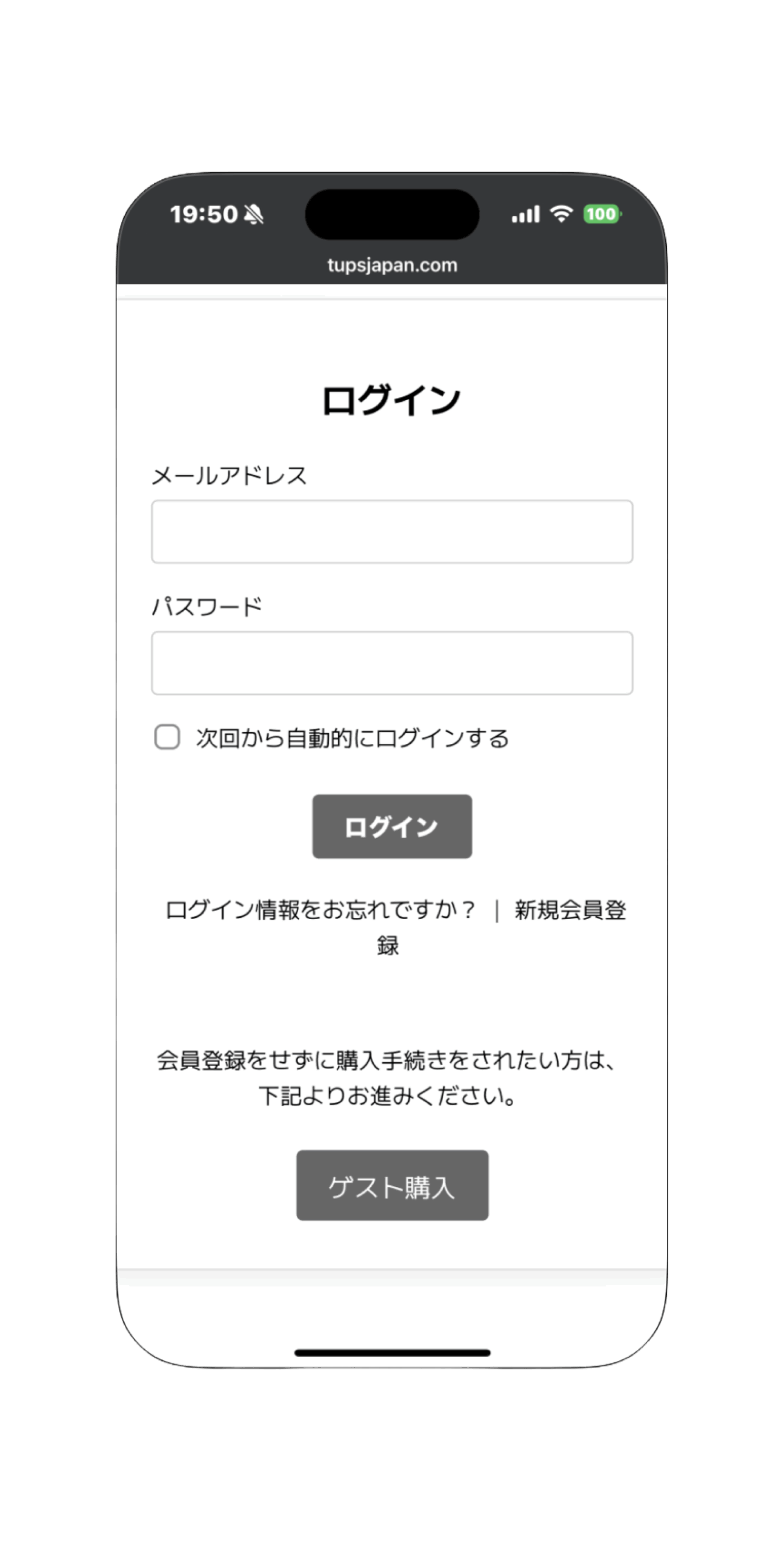 ログインしていない場合はログイン画面が表示されますので、ログインID(メールアドレス)とパスワードを入力してください。